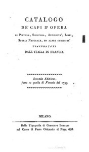 Catalogo degli oggetti d’Arte, d’Antichità, codici e libri depredati e trasportati da Venezia e provincie venete in Francia